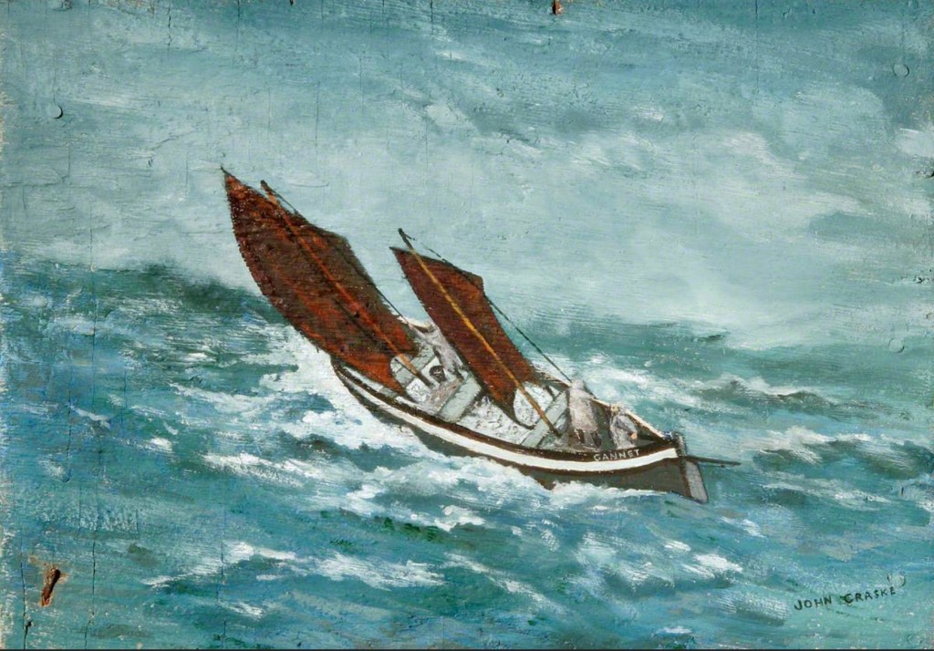 Sometimes people are born in the wrong place at the wrong time. In 1928, renowned artists Ben Nicholson and Christopher Wood walked past a small fisherman’s cottage in St. Ives, and spied a retired fisherman Alfred Wallace painting seascapes by the hundreds, to escape his loneliness, following the death of his wife. Wallace became well known through his association with the St. Ives artists and his work is now famous throughout the world. Replace Alfred Wallace with John Craske and the story might have been totally different.