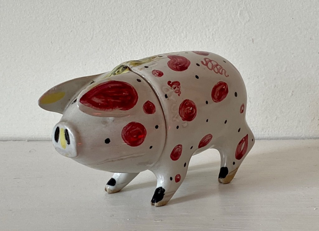 The pottery still exists, but these days it survives mainly on its production of tiles and animal and pastoral ceramic figurines, all excellently made and hand painted, but not I’m afraid to my taste. It is to the 1950s that I turn to, the heyday of the pottery that produced large amounts of affordable brightly painted tin glazed earthenware for the kitchen and home.