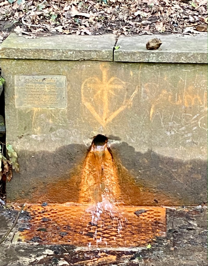“Chalybeate waters, also known as ferruginous waters, are mineral spring waters containing salts of iron.
